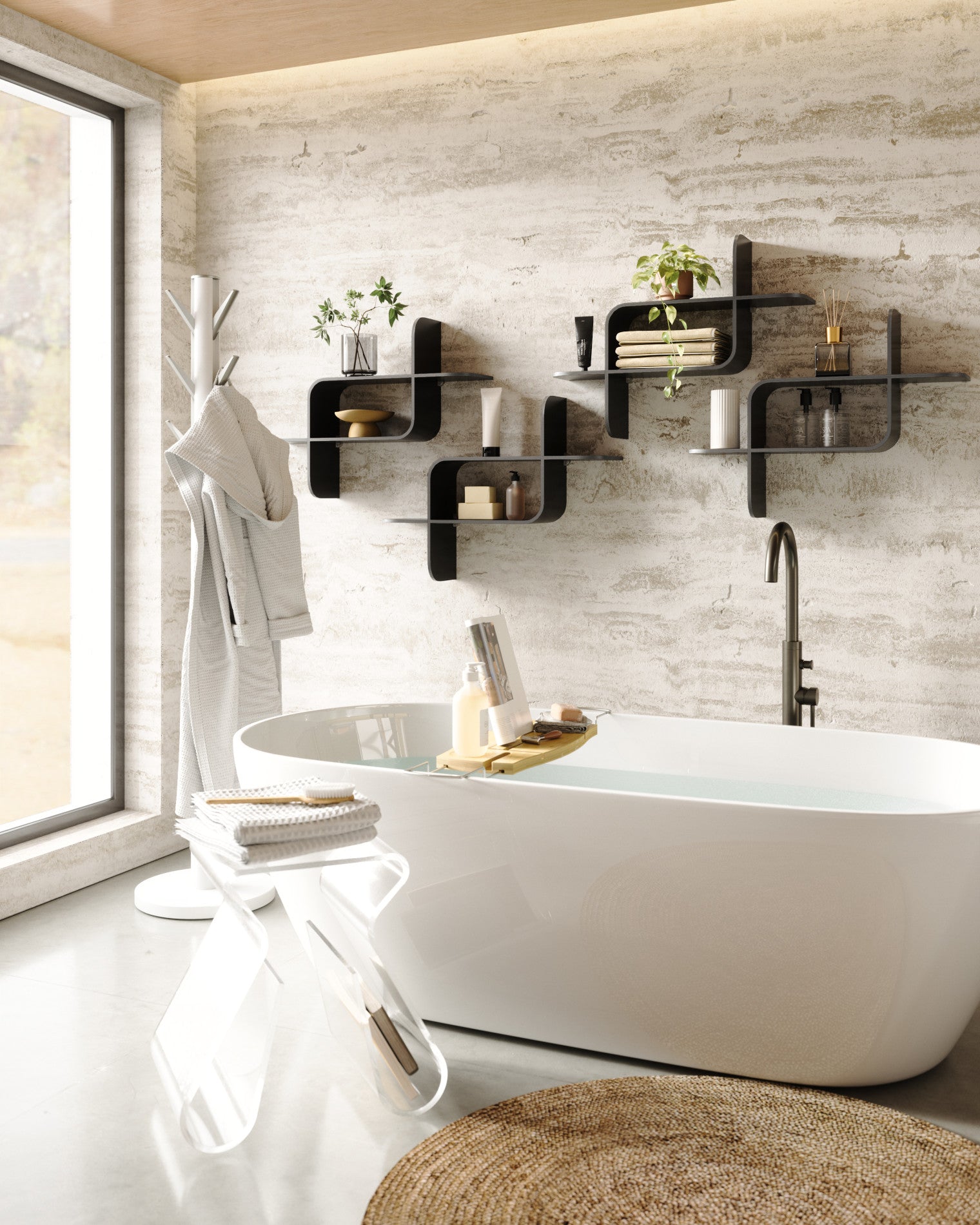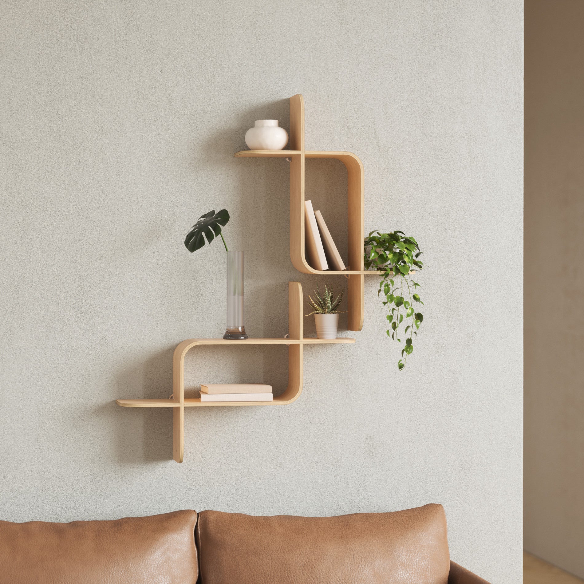 Bring life to any wall space with MONTAGE Wall Shelf. Made of natural bent-wood, this modern storage solution mixes modern shapes and natural finishes. Easy to install, and with a total weight capacity of 15lbs. (6.8kg), show off your favorite books, plants and decor and much more. Get creative and use multiple Montage Shelves for an eye-catching wall statement. Measures 25.31 x 18.78 x 6.12 inches (64 x 48 x 16 cm). Sourced from renewable wood sources. Wood is a unique natural material with variations in tone, texture, and grain. The product may vary from our imagery.