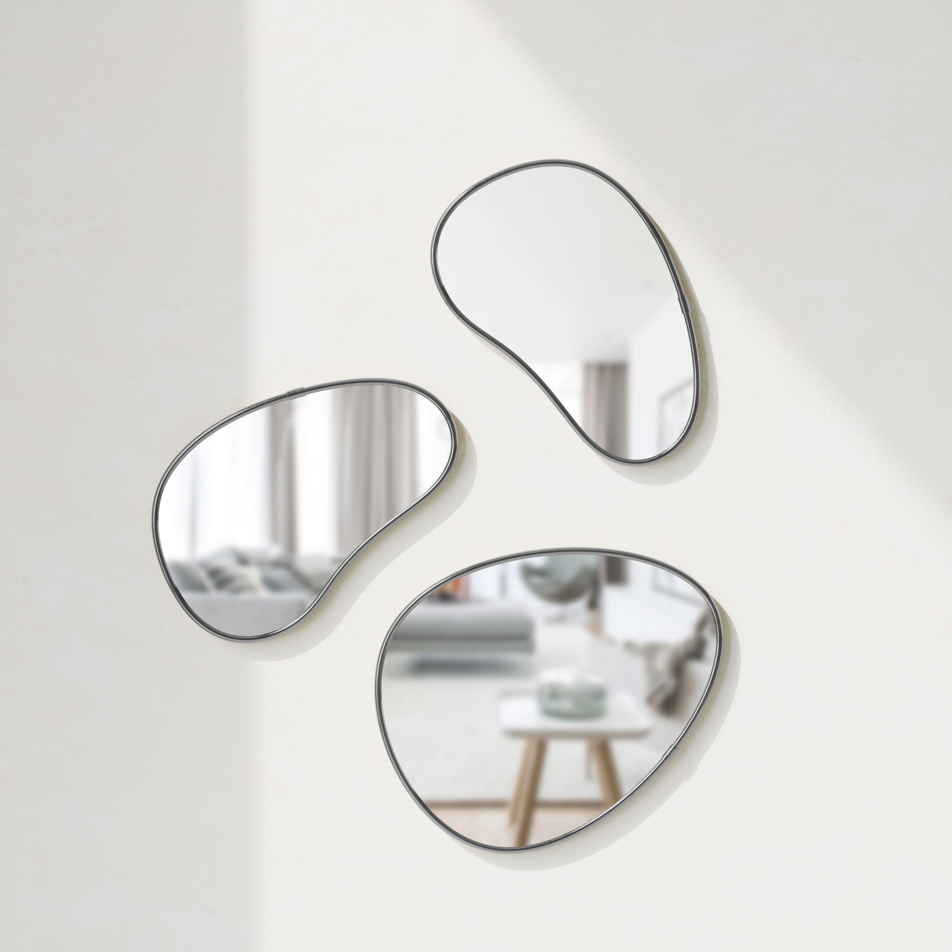 This unique, set of 3 organic-shaped mirrors are a new addition to our Hubba Family. Easy to install with included adhesive strips, hang Pebble in a way that best fits your space. This playful set of mirrors make a perfect addition to a variety of spaces in the home - from entryway to bathrooms, playrooms and more. *For best results, clean your mounting surface before applying adhesives and avoid rough or textured surfaces. ⓘ These Pebble Mirrors are easy to install and come with strong 3M adhesive pads to customize placement. Warning: Surface damage may occur if adhesive mounting is removed.